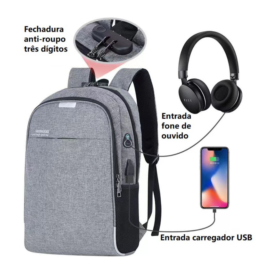 Comprar na ShopeeMochila Notebook Anti Furto E Anti-roupo Com Cadeado E Entrada Fone De Ouvido E USB