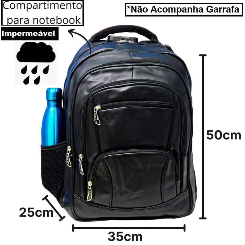 Mochila Escolar Couro Grande Notebook Impermeável