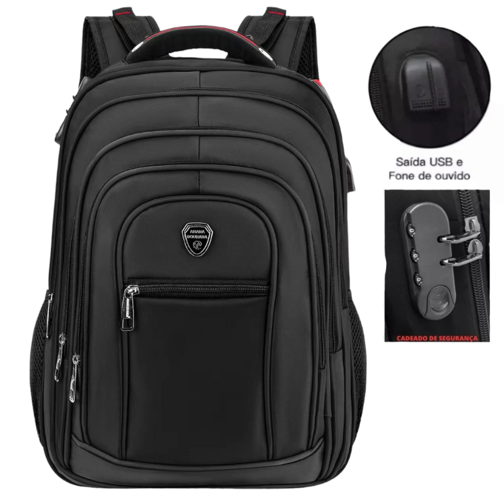 Comprar na ShopeeMochila Bolsa Notebook Impermeável Resistente Reforçada cabo de aço saída USB
