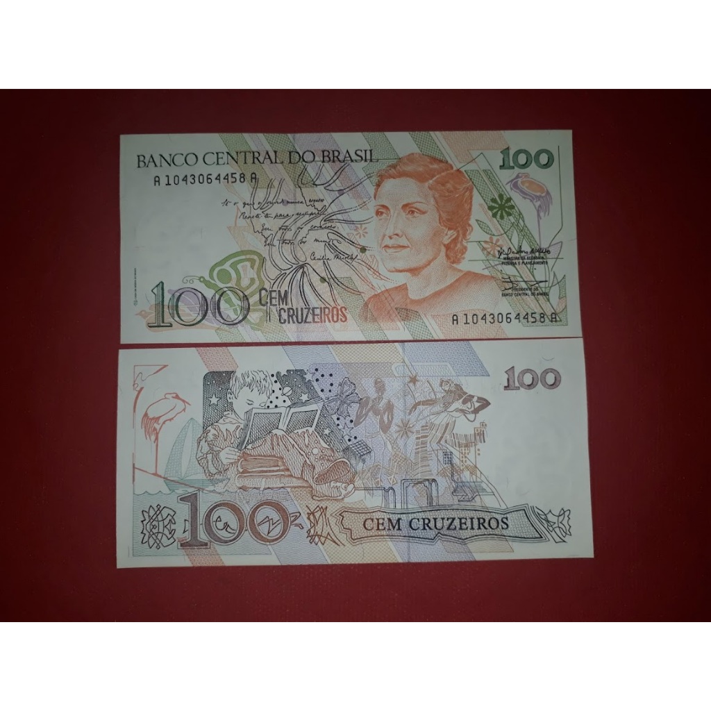 C210 Cedula do Brasil 50 Cruzados Novos Com Carimbo 50 Cruzeiros Carlos Drummond de Andrade C 210