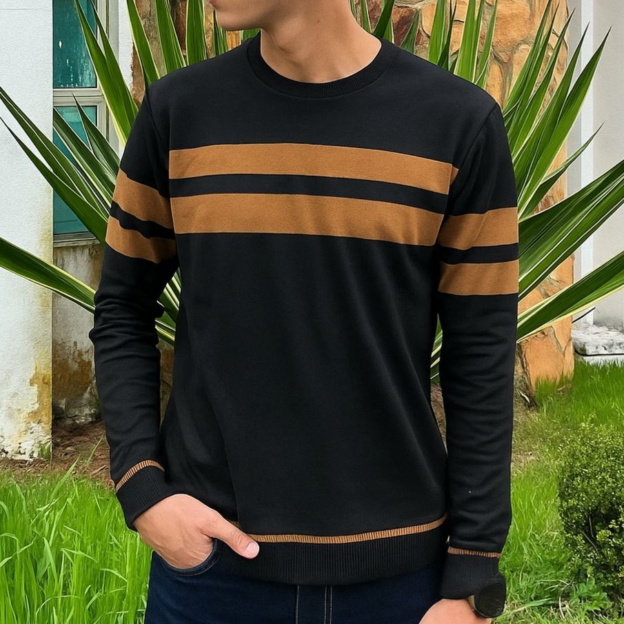 Comprar na ShopeeBlusa Trico Masculina Listrada Gola Careca - Suéter Básico Confortável Manga Longa
