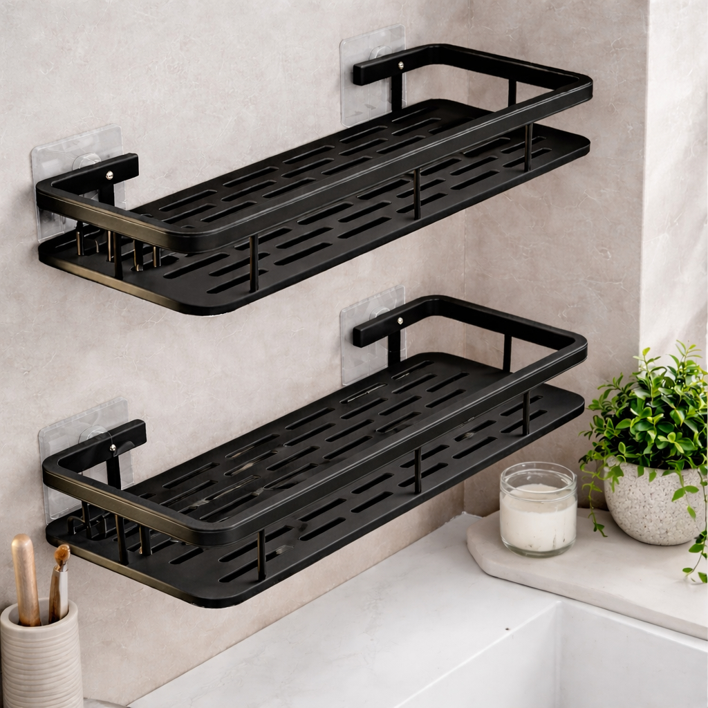 Comprar na ShopeePrateleira Suporte Organizador Com Adesivos Parede Banheiro Cozinha Shampoo Sabonete Metal Casa