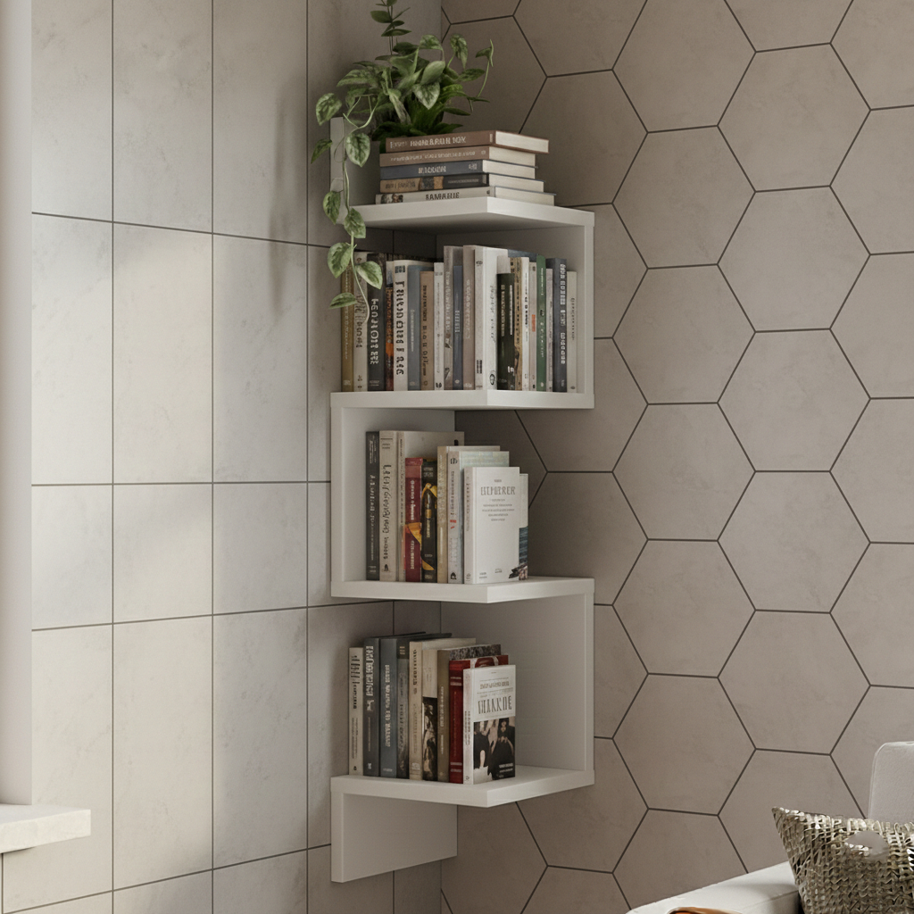 Prateleira De Canto Organizadora de Livros Nicho Decoração Branca Preto