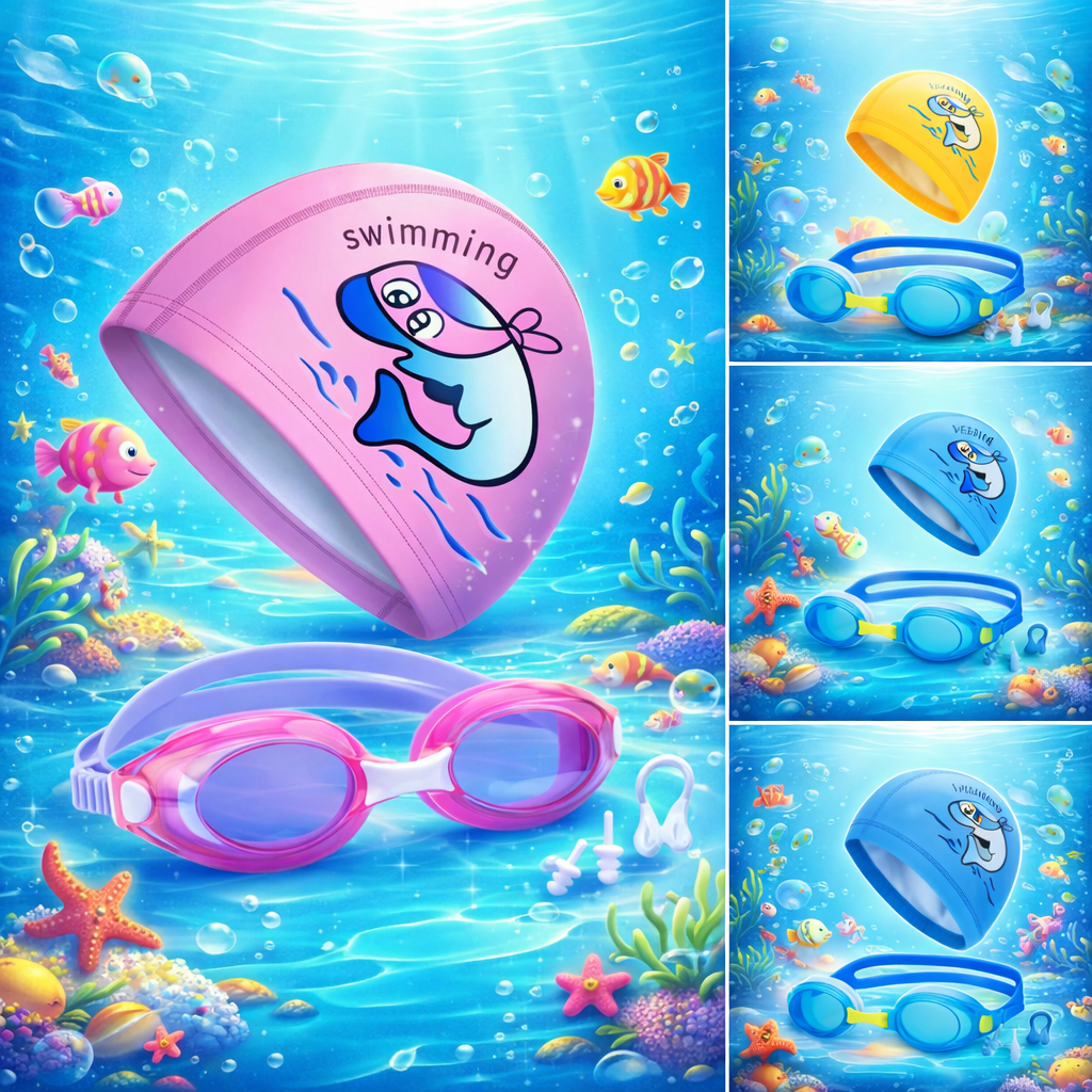 Comprar na ShopeeKit Natação Infantil Óculos Touca PU com Protetor Nasal e Auricular