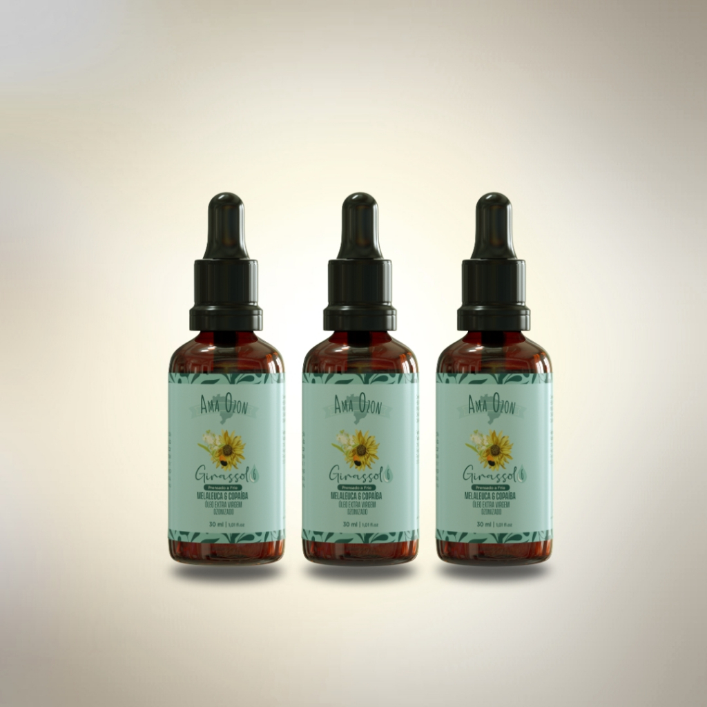 Kit Com 3 Unid Óleo de Melaleuca & Copaiba Ozonizado Com Girassol 30ML Cada Ama Ozon