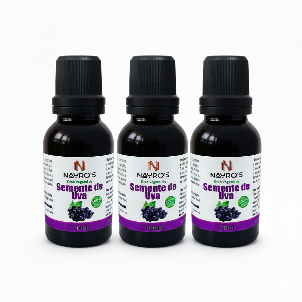Kit 3 Óleos Vegetais de Semente de Uva 100% Puro | Frasco Gotejador 30ml cada