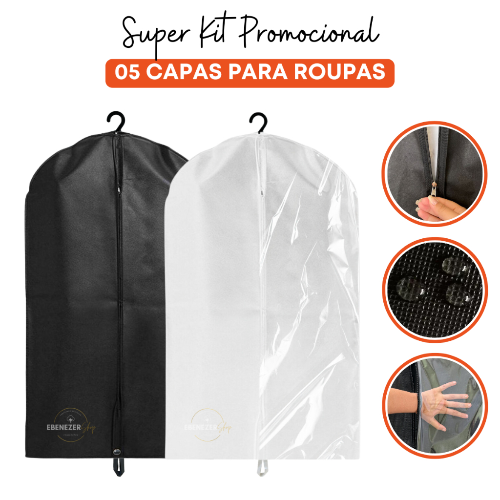 Kit 5 Capas Protetor Terno Vestido Noiva TNT e Visor Com Zíper e Alça Organizador Guarda Roupa