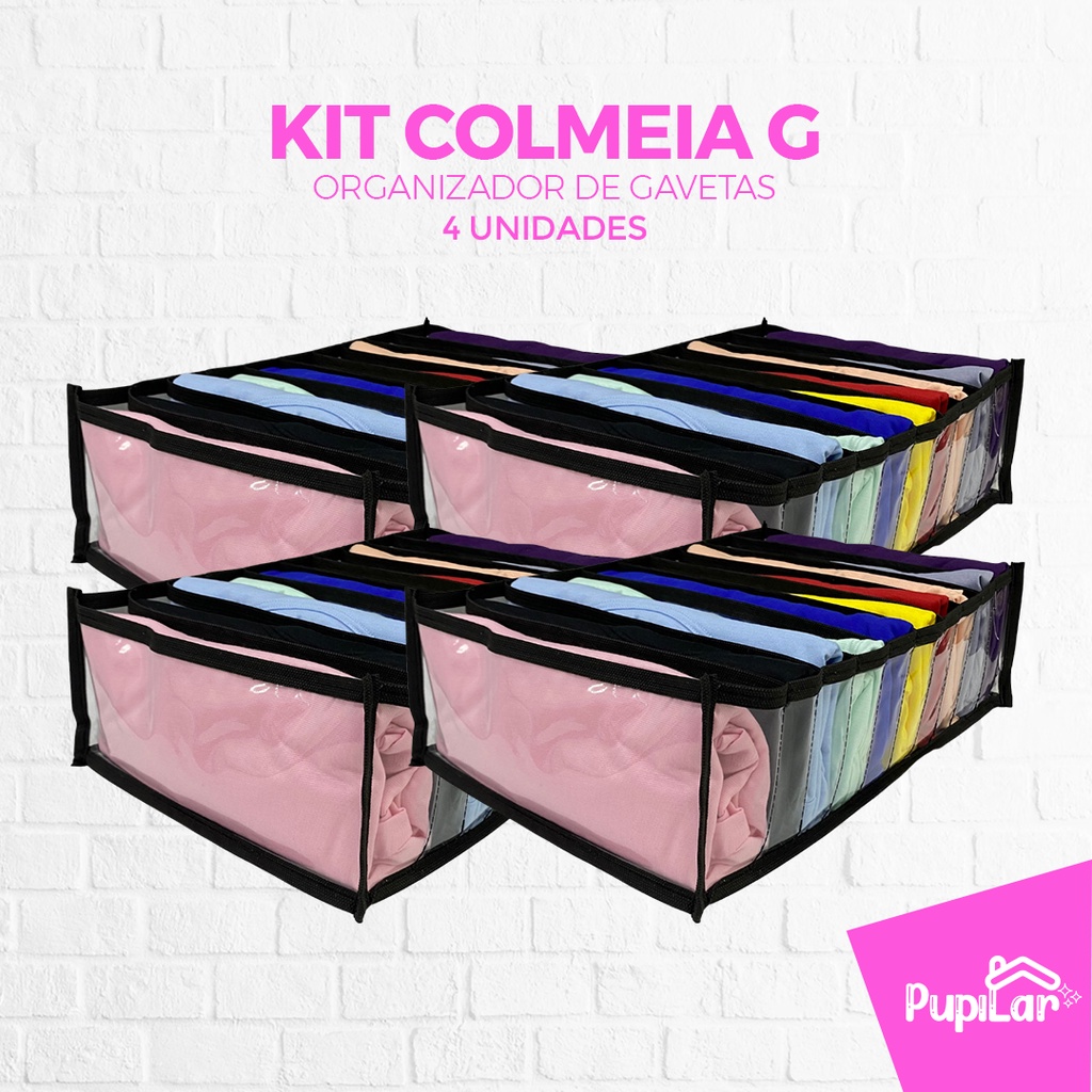 Comprar na ShopeeKIT 4 COLMEIAS ORGANIZADORAS G PRETA (10X25X35) PARA CAMISETAS - PUPILAR