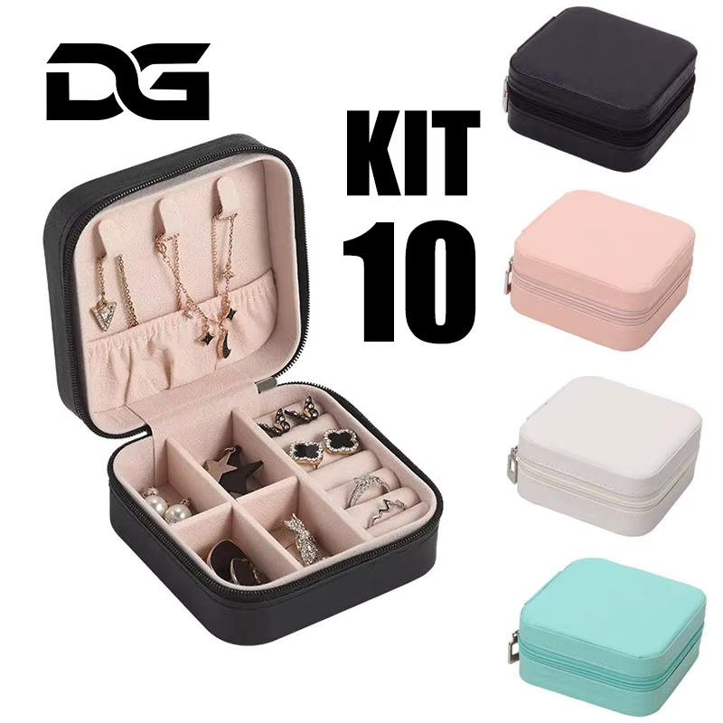 Kit 10/6 Porta Joia Portátil Bolsa Para Viagem com Divisões para Brincos Colares anel Bom Presente