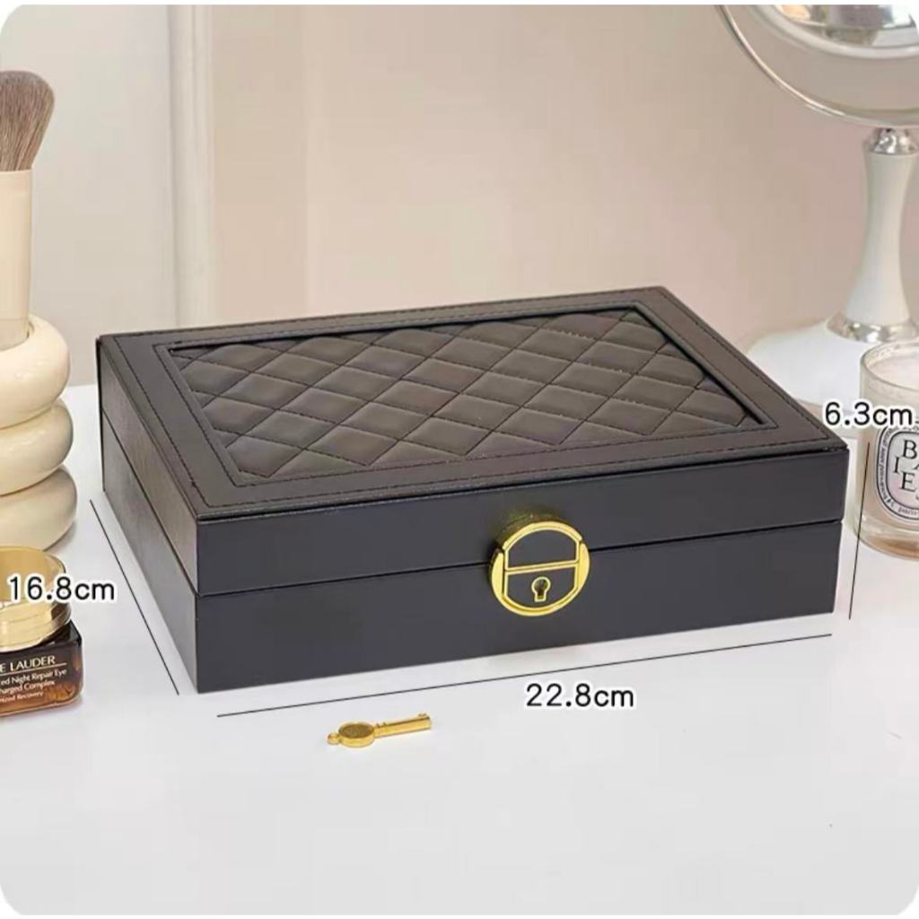 Comprar na ShopeeOrganizador de Jóias Feminino Grande em Couro com Fechadura e Chave