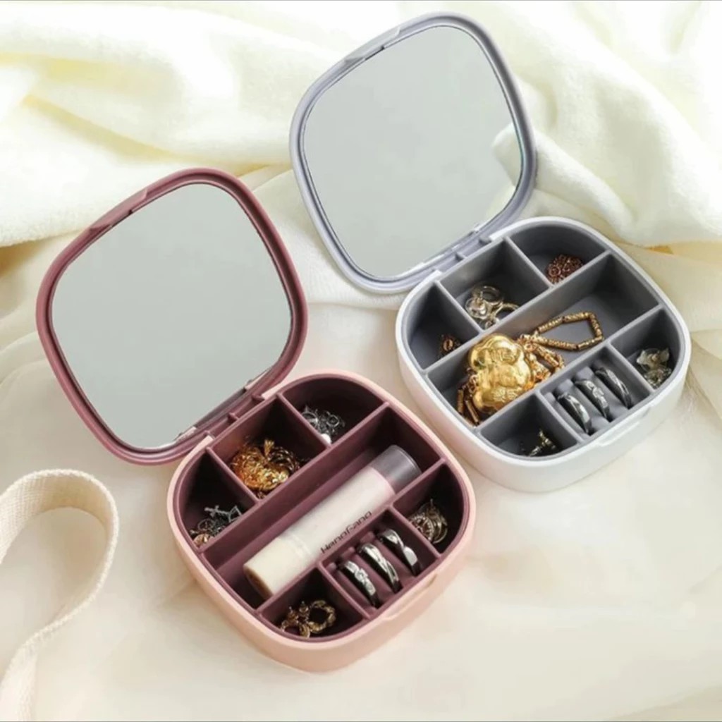 Mini Porta Joias Com Espelho Compacto 7 Compartimentos 10 cm
