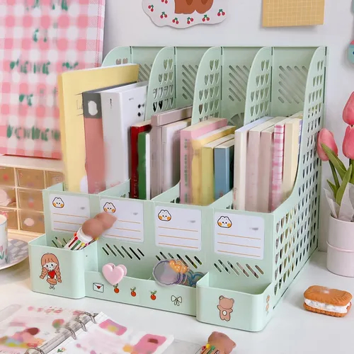 Comprar na ShopeeOrganizadores de Mesa/Porta-Papéis 3 ou 4 Divisórias + Porta-Trecos com Figurinhas Adesivas - Organização Inteligente