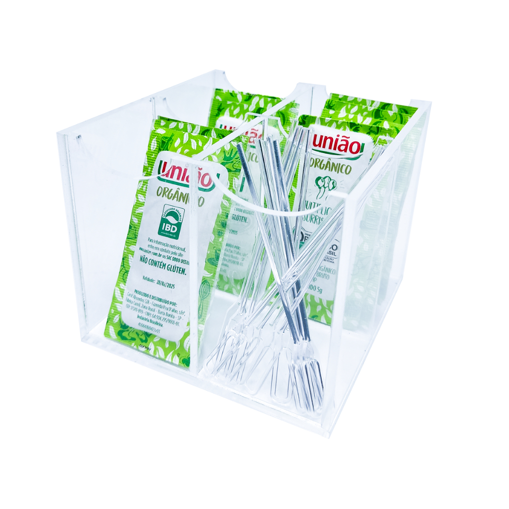 Comprar na ShopeeCaixa Porta Açucar Organizador de Sachês Com 4 Divisorias em Acrílico