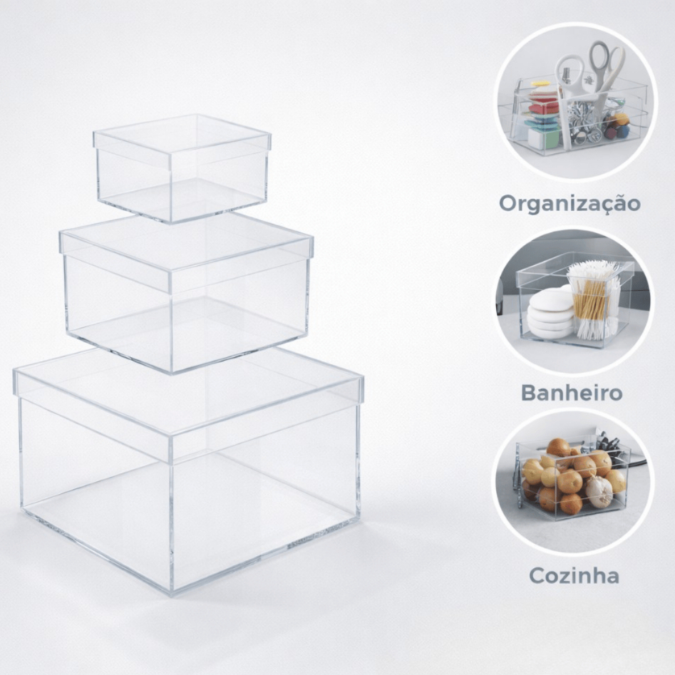 Comprar na ShopeeCaixa Acrílico Multiuso Cesta Organizadora Transparente Com Tampa
