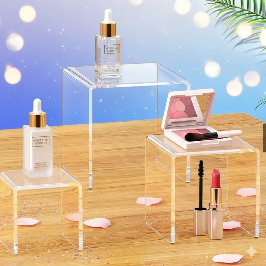 Kit 3 Plataforma Doce Maquiagem Expositora Vitrine Acrilico Brinquedo Decoração Nicho Bolo Cupcake