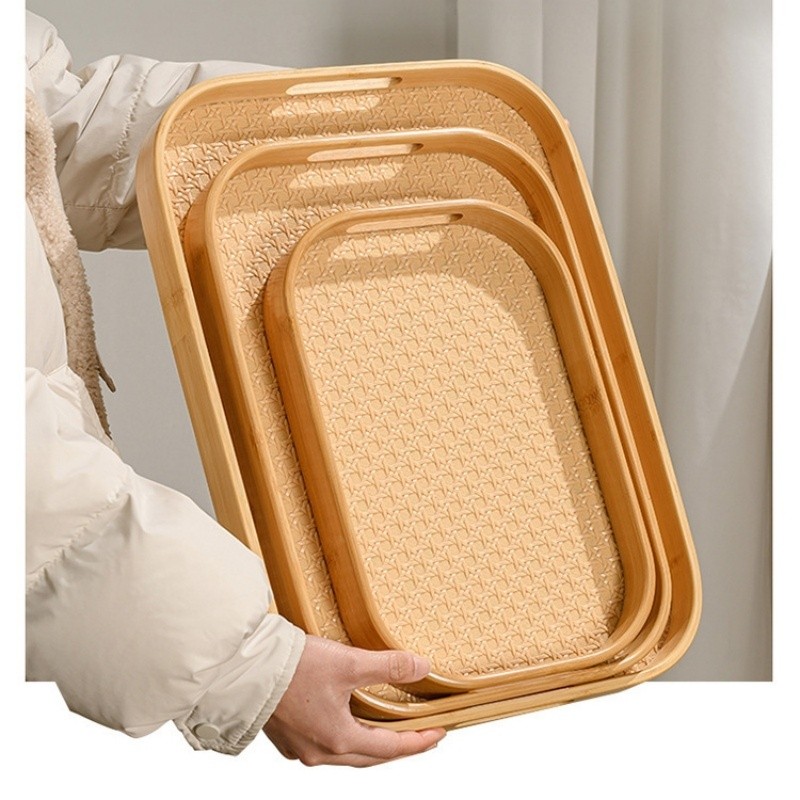 Comprar na ShopeeBandeja Retangular de Bambu e Palhinha 40cm com Alças, Design Elegante