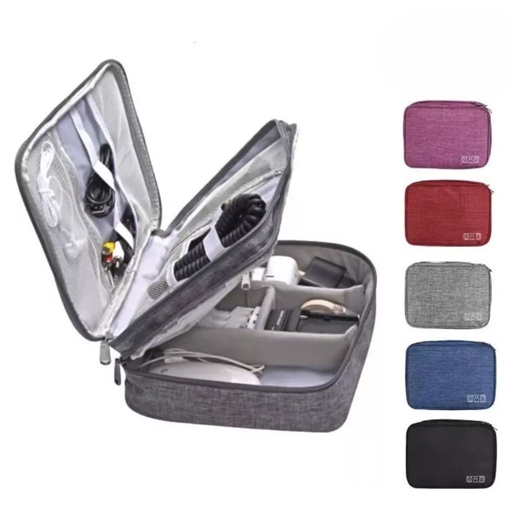Comprar na ShopeeBolsa Organizadora Cabos Case Estojo Bag Eletrônico Viagem Dupla Grande