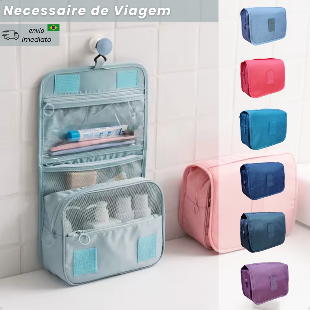 Necessaire Organizadora Bolsa De Viagem Higiene Pessoal Maquiagem Com Divisória c/ Gancho Cabide
