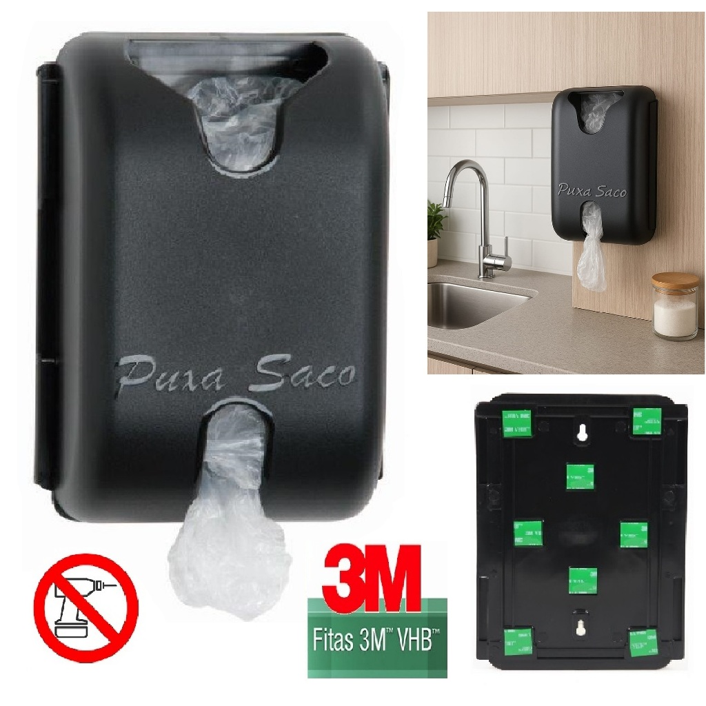 Puxa Saco Sacolas plásticas PRETO Fixação Fita 3M