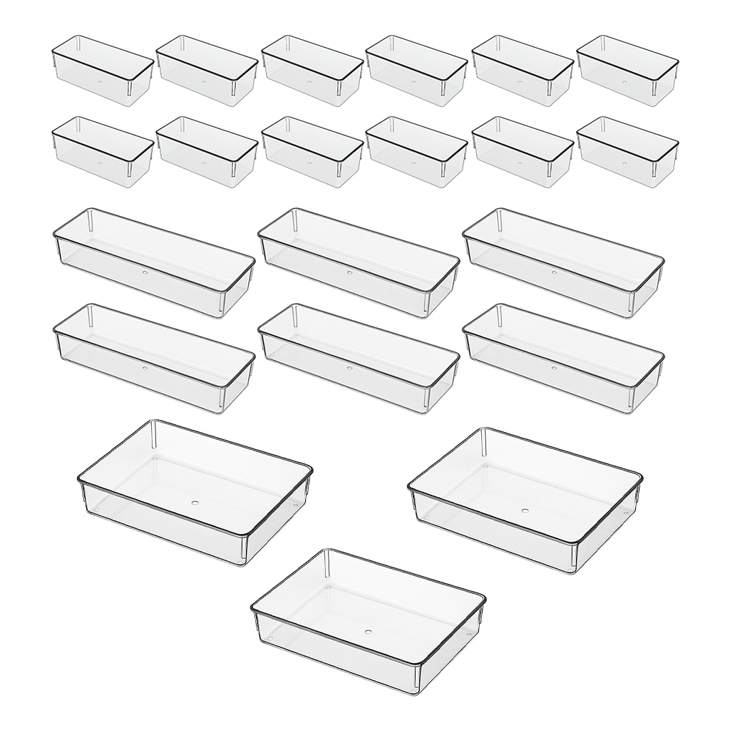 Kit 21 Organizador Multiuso Modular Gavetas Acrílico Cristal