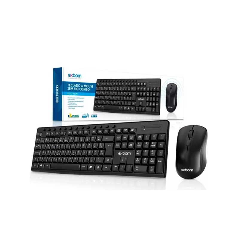 Kit Teclado + Mouse Multimidia Sem Fio ABNT2 2.4GHZ BK-S1000M
