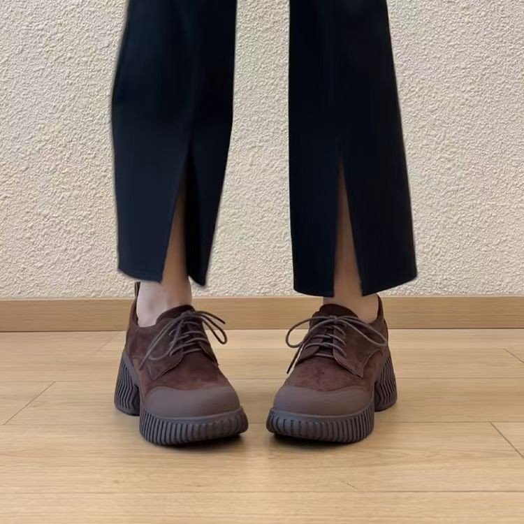 Mulheres Retro Mocassins Primavera Marca De Luxo Aumentar Sola Grossa Couro Oxford Sapatos Rendas Até Plataforma Trabalh