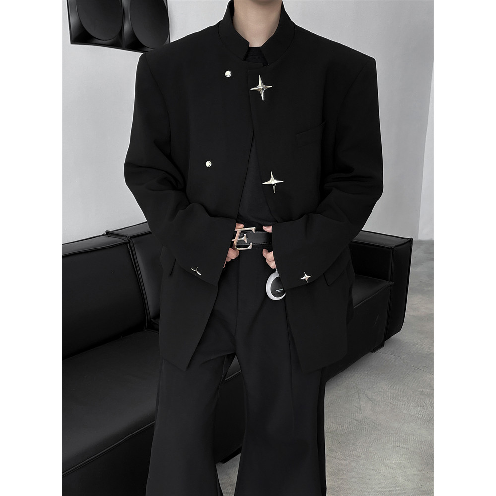 Casual Masculino Outono Cor Sólida Gola Com Zíper Bolsos Fino Blazer Casaco