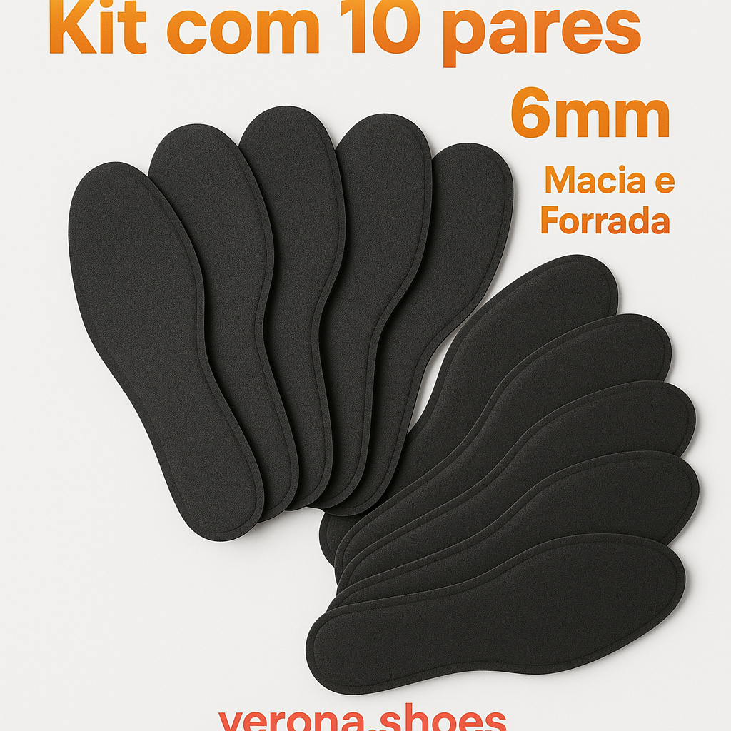 Comprar na Shopeekit 10 palmilhas 6 mm para tênis sapatos botas chuteiras, coturnos adulto e calçados do 26 ao 43