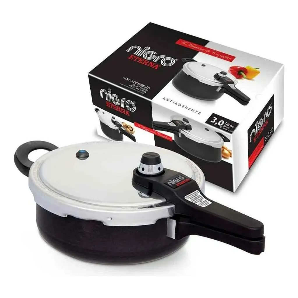 Comprar na ShopeePanela de Pressão 3 Litros Nigro Antiaderente Grafite 6 Sistemas Segurança Fechamento Externo