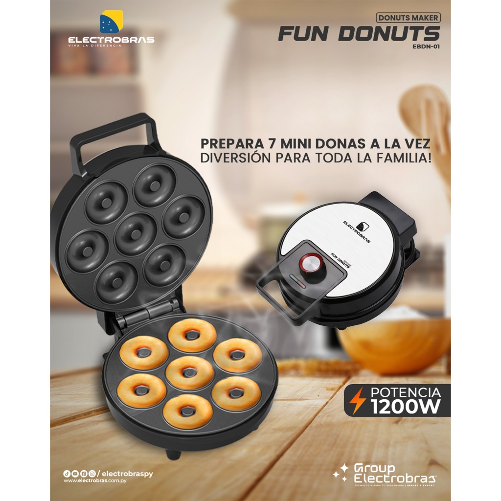 Comprar na ShopeeMAQUINA DE Donuts Maker MINI DONUT Electrobras EBDN-01 - 1000W - 110V e 220V - Preto e Prata