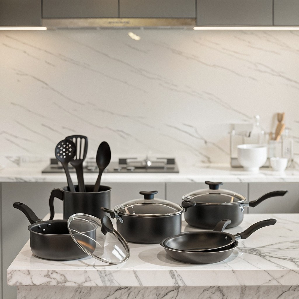 Comprar na Shopeejogo De Panela Alumínio 5 Pçs Preto Craqueado + Fervedor N12