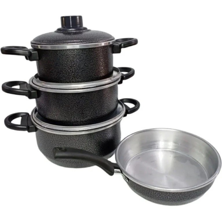 Comprar na ShopeeJogo panelas Alumínio Fundido/batido kit 5 peças craqueado preto