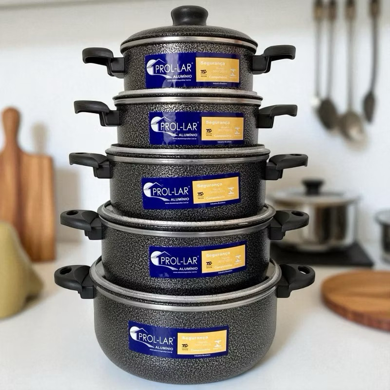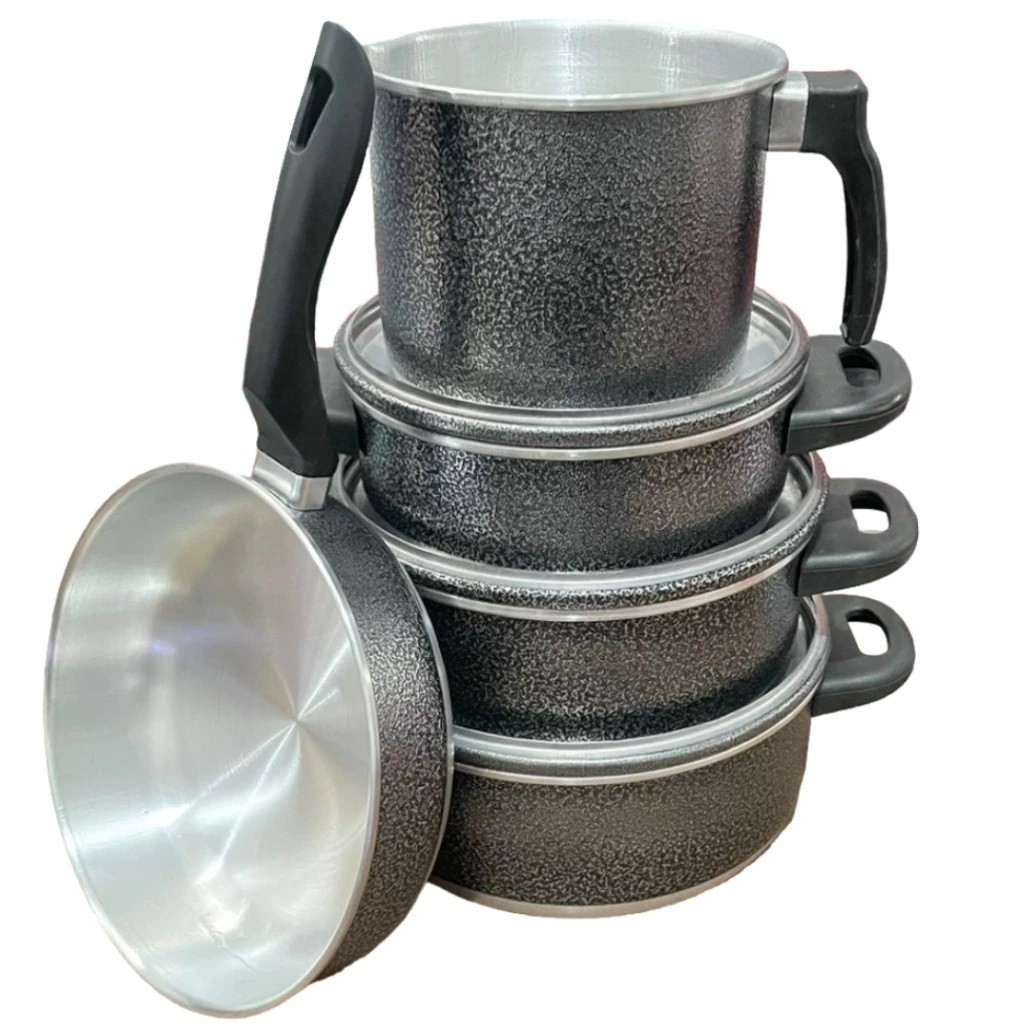 Comprar na ShopeeJogo de Panelas Frigideira Caneco Caçarola Alumínio Resistente 5 peças