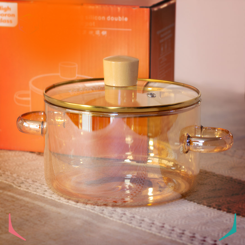 Comprar na ShopeeCaçarola de Vidro Âmbar Borossilicato Com Tampa Resistente ao Fogo 1,8 Litros Panela