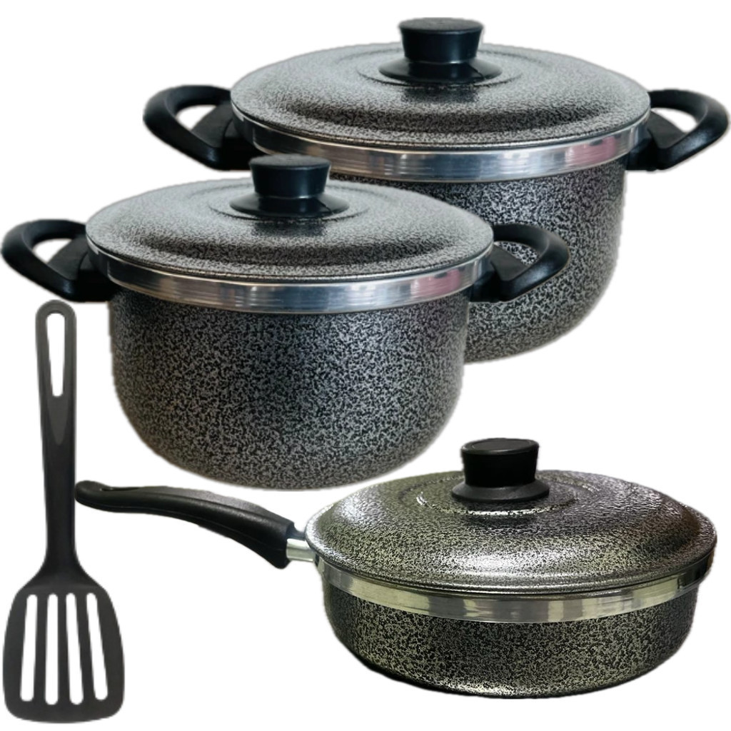 Kit Panelas 3 Peças Caçarolas Alumínio CRAQUEADO Com Frigideira N.18,1 Espátula
