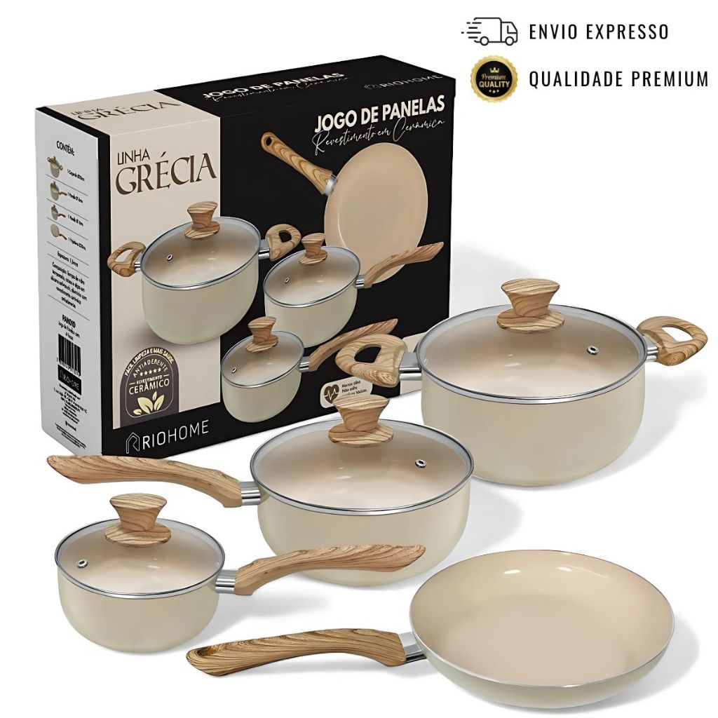 Comprar na ShopeeJogo de Panelas Cerâmica Antiaderente Grande