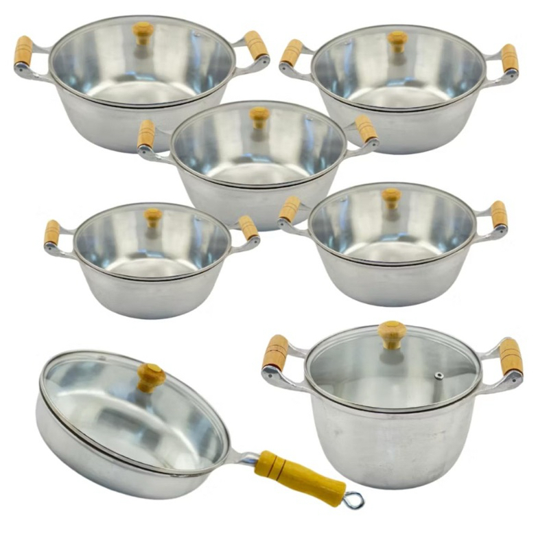 Jogo de Panelas Frigideiras e Caldeirão Tampa de Vidro Aluminio Fundido BatidoTampa de Vidro 7 pçs