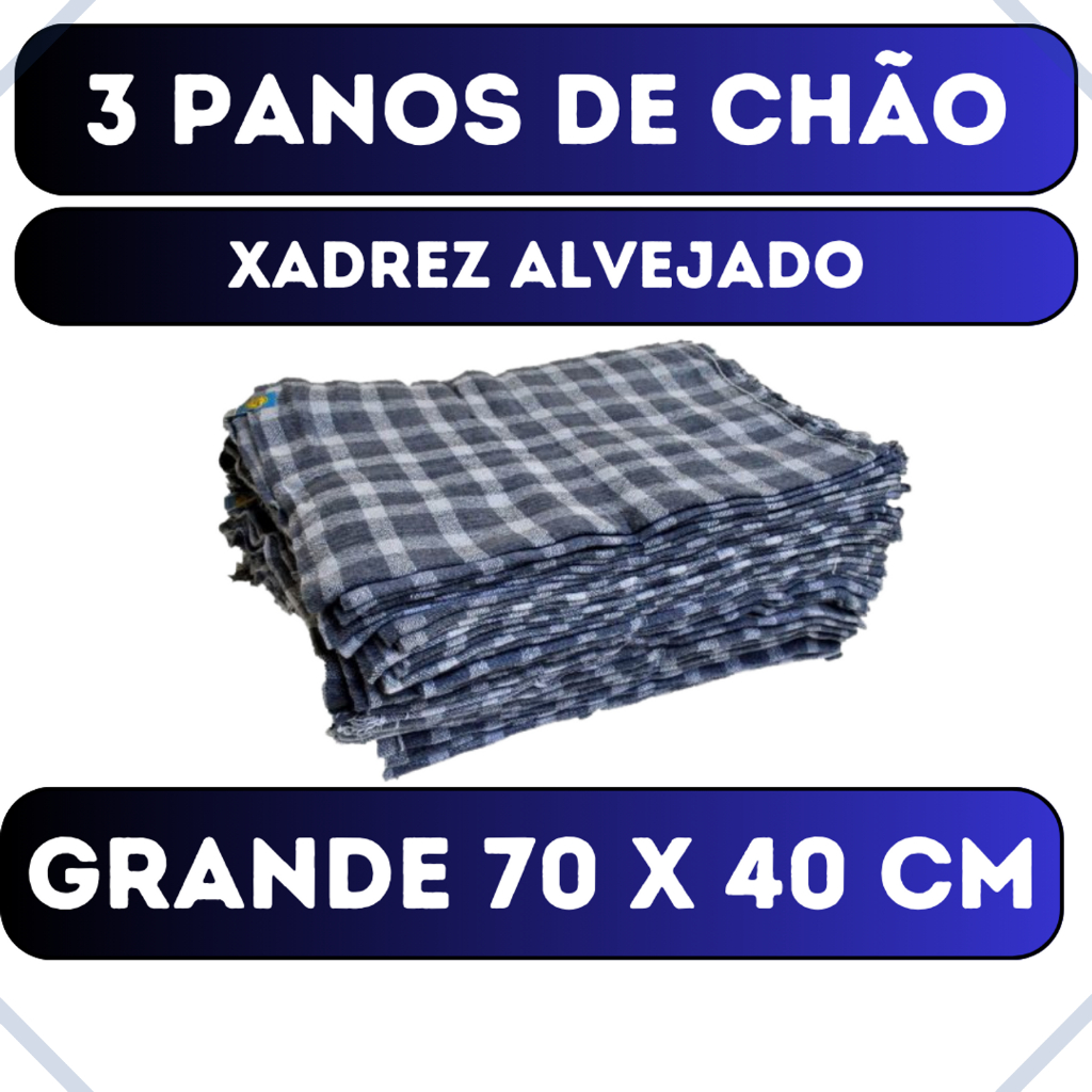 Comprar na ShopeeKit com 3 Panos de Chão Grande 70x40cm - Saco Duplo Xadrez Azul Alvejado - Neves - Revenda - EV