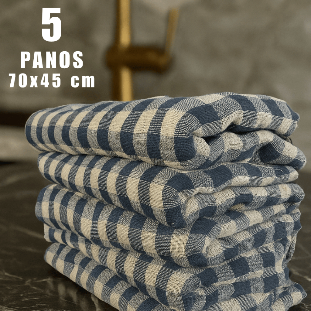 5 Panos de Chão Xadrez Duplo 70×45 cm Ideal para Casa