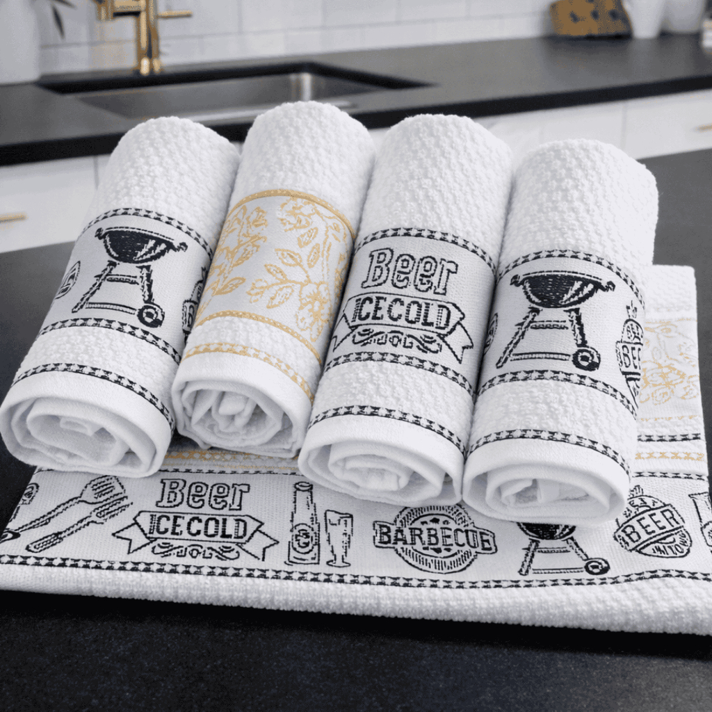 Kit 5 Panos de Prato Jacquard Grandes 100 % Algodão 50×70 cm Alta Absorção