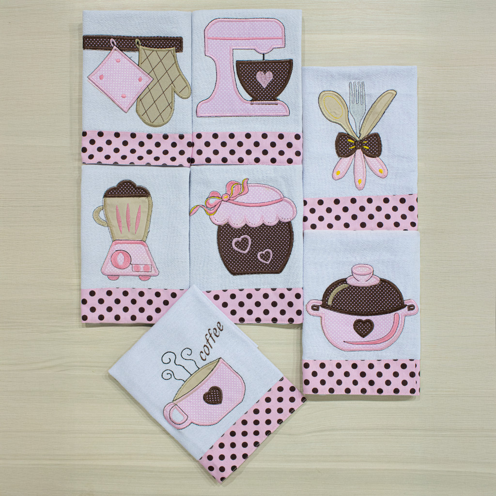 Comprar na ShopeeKit 7 Panos De Prato Bordado Com Barrado 100% Algodão Decorativo Alta Absorção Luxo Não Solta Fiapo
