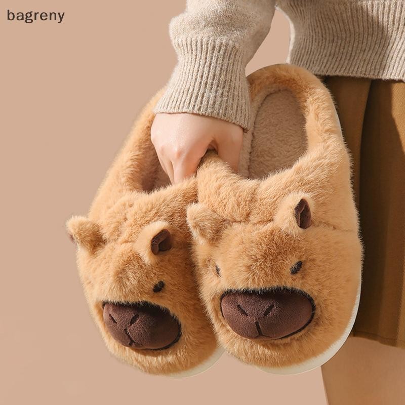 Comprar na Shopee[bagreny] Chinelos De Capivara De Pelúcia Dedo Fechado Bonitos Sapatos De Casa Confortáveis Caminhada Peludos Antiderrap