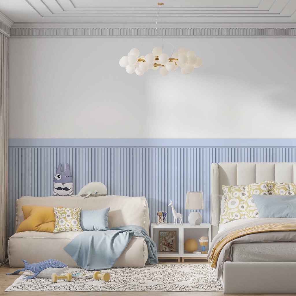 Comprar na ShopeePapel De Parede Adesivo Ripado Azul Claro Com Faixa Para Meia Parede