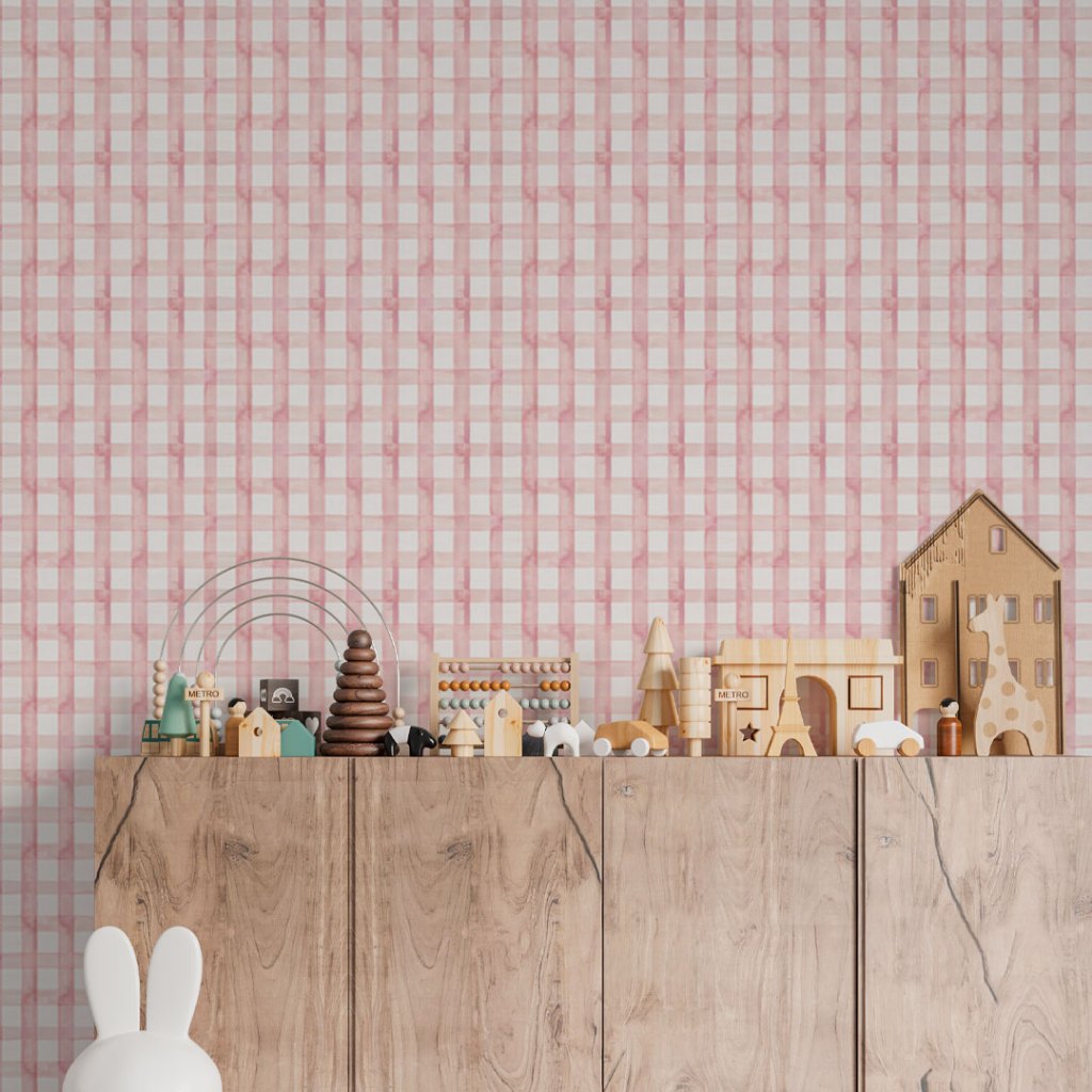 Comprar na ShopeePapel de Parede Xadrez Infantil Aquarela Lavável Autocolante