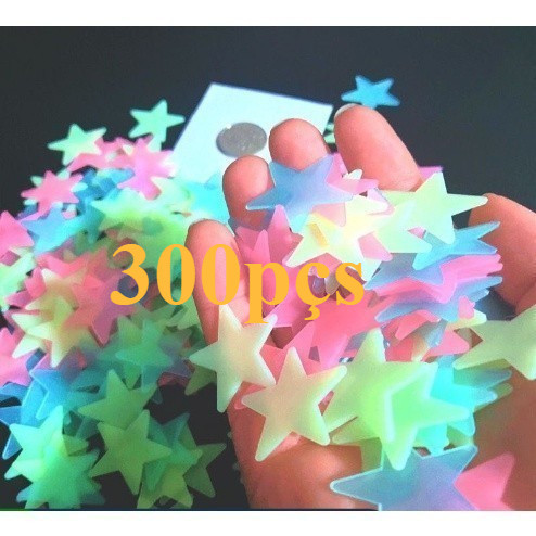 100/200/300 Pçs Adesivo de Estrela Colorida que Brilha No Escuro / Adesivo Plástico Luminoso para Decoração de Casa