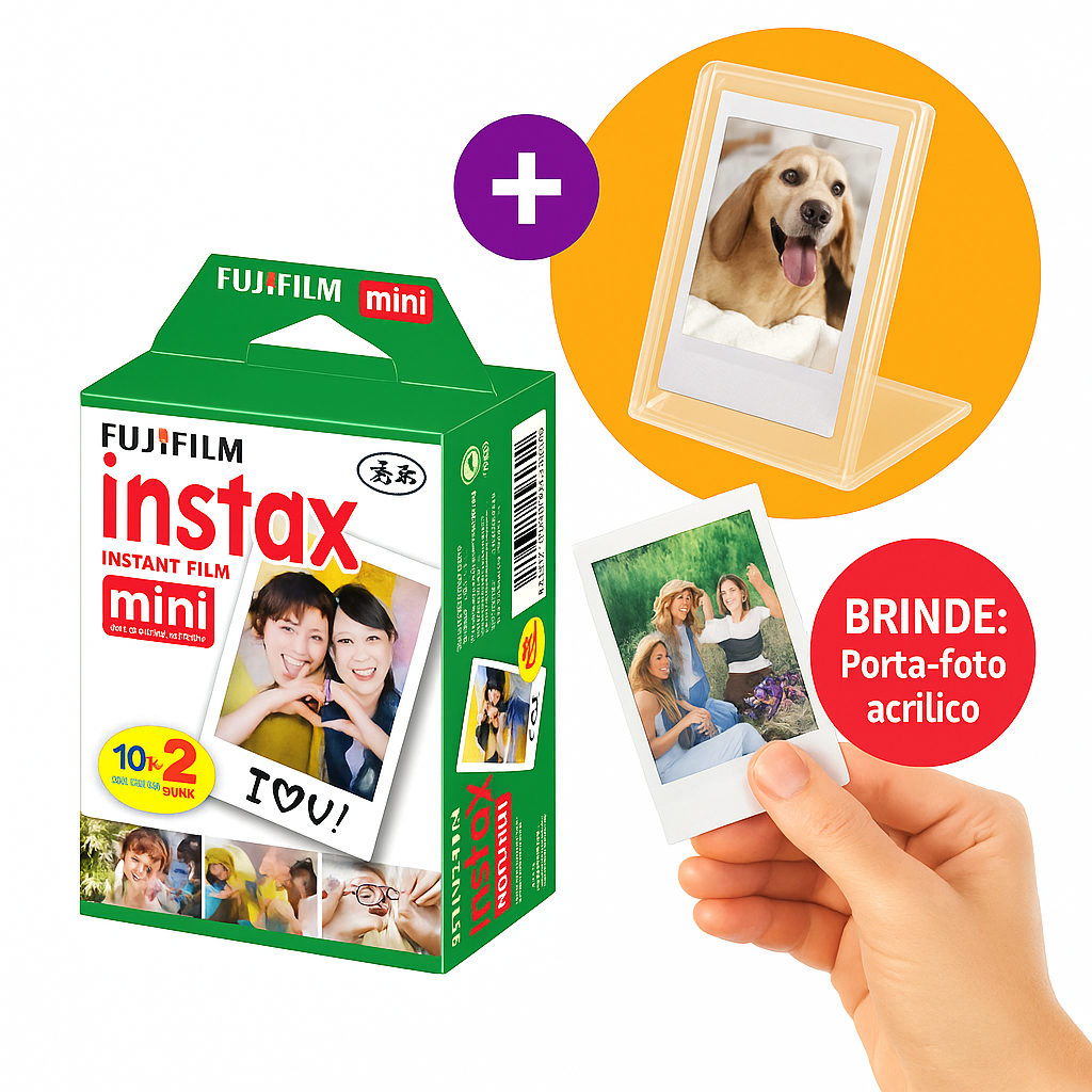 Comprar na ShopeeKit Filme Instax Fujifilm Original com 40/20 Fotos Filmes Instantâneos e Porta Foto Cristal Para Decorativo de mesa