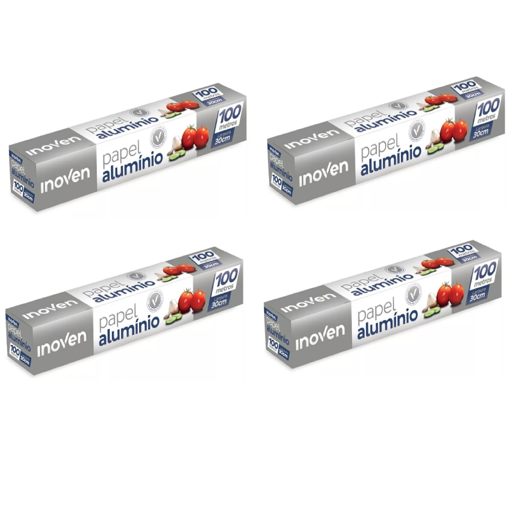 4 Rolos Bobina Papel Aluminio 30cm X 100 Metros Longo