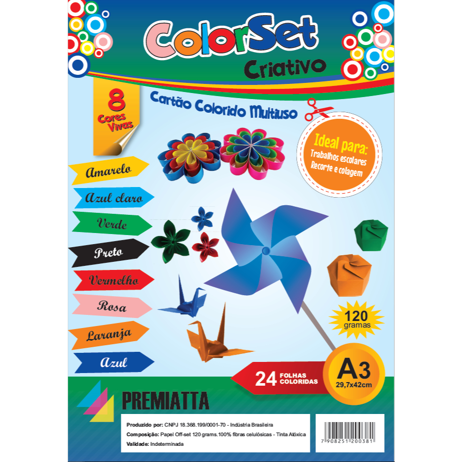 Comprar na ShopeeCOLOR SET CRIATIVO A3 120G (29,7X42) PCT C/24 FOLHAS SENDO 08 CORES SORTIDAS