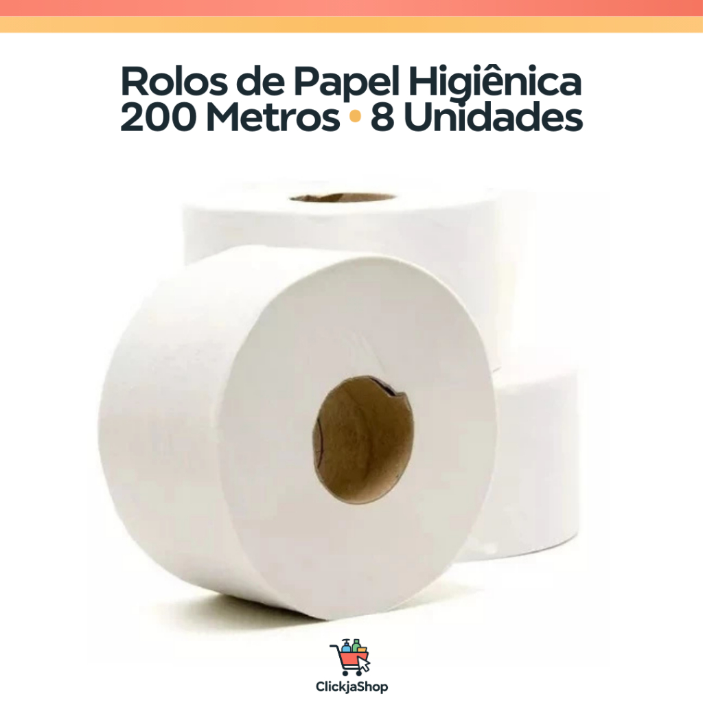 Comprar na ShopeeRolo de Papel Higiênico 200M - Pacote c/ 8 Unidades | Textura Aerada c/ Boa Alvura e Maciez