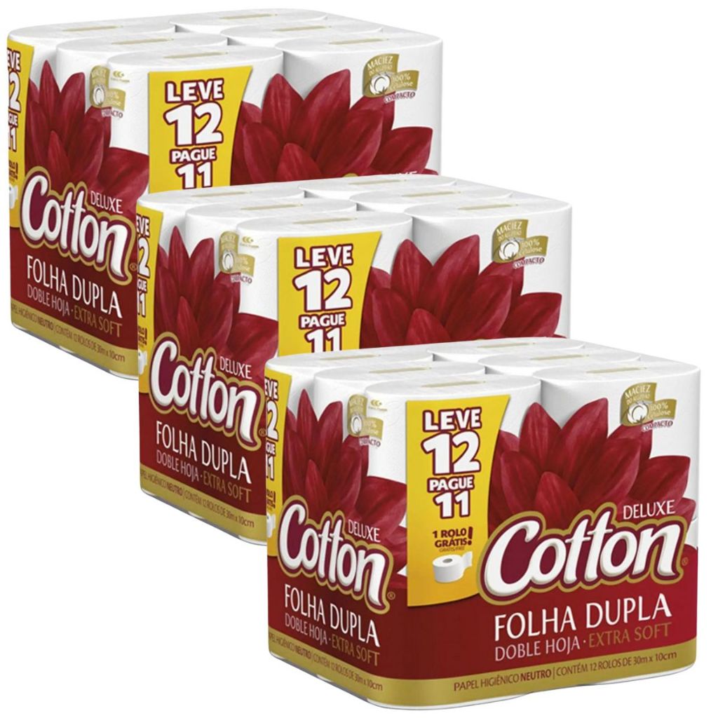 Comprar na Shopee36 Rolos do Papel Higiênico Cotton De Luxe Folha Dupla Extra Suave com 30 Metros